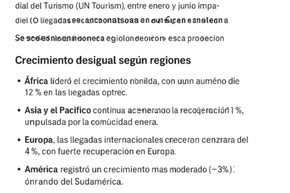 La recuperación turística continúa a buen ritmo, según el último informe de la Organización Mundial del Turismo (UN Tourism). Entre enero y junio de 2025, las llegadas internacionales aumentaron un 5 ...